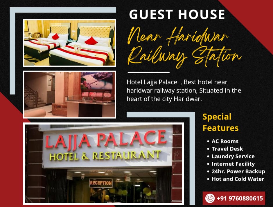 Best guest house near Haridwar railway station Located in the heart of Haridwar, Hotel Lajja Palace is a premier guest house that offers comfortable and affordable